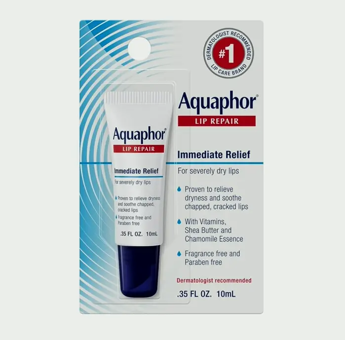 Aquaphor Lip Repair Balm is widely recommended by dermatologists because of its capacity to soothe chapped lips. It is medically proven to ease dehydration and calm broken lips. Scent and preservative free, it helps prevent dehydration for long-lasting hydration. This enriching formula is made with nutrients, shea butter, and calming chamomile extract. Each set includes one (single) container of Aquaphor Lip Care Balm (0.35 fl. oz.)