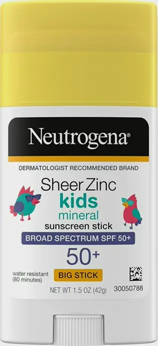 1.5 oz of Neutrogena Sheer Zinc Oxide Kids Sunscreen Applicator with full spectrum SPF 50+ for shielding against sun damage and to help prevent skin burns. This sunscreen stick applies easily with minimal mess application that leaves no white residue and is water resistant up to 80 minutes. It provides superior sun shielding to your child’s skin whenever they’re outdoors. The portable kids mineral sunblock features effective full spectrum SPF 50 plus sun care to protect against skin-aging ultraviolet A and skin-burning ultraviolet B rays. Formulated with the natural 100% mineral active ingredient zinc, the non-oily sunscreen for kids is ideal for delicate skin and is also fragrance-,dye-,oxybenzone- and free of parabens. From the #1 dermatologist recommended sun care label, when used properly, helps prevent sunburn and decrease the chance of skin cancer caused by the sunlight. Use prior to sun contact to safeguard during outdoor fun like cycling or hiking.