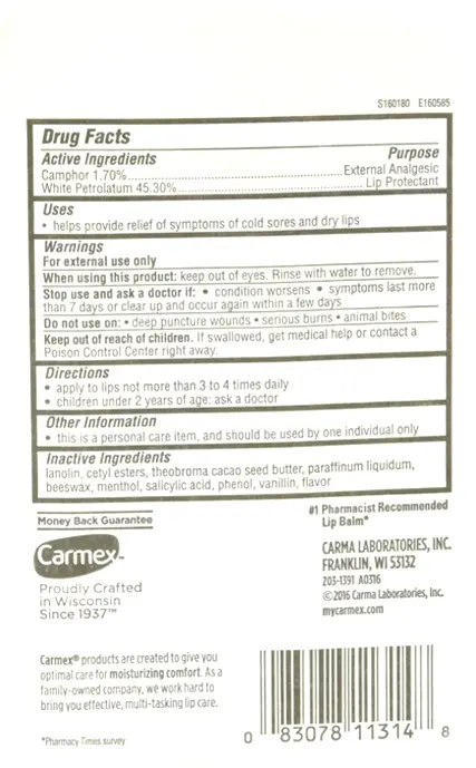 Offers extended coverage to assist healing. Applies smoothly, hydrating lips using nourishing cacao butter. Cools and soothes using camphor oil & menthol.