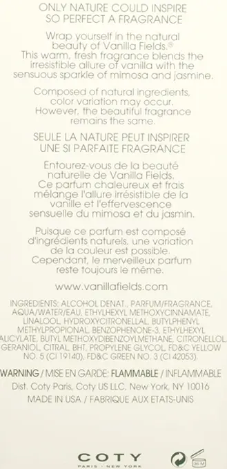 Durable wearable perfume. Initial scents of bergamot, coconut, and nectarine smell divine. Middle flower notes of enticing jasmine, pelargonium, and lily of the valley. Final scents incorporate a hint of aroma: amber, cedarwood, pachouli, santalum, musc, tonquin bean, and vanilla. Cologne spray for ladies is also available in a convenient .375 fl oz travel-sized perfume container, sold separately.