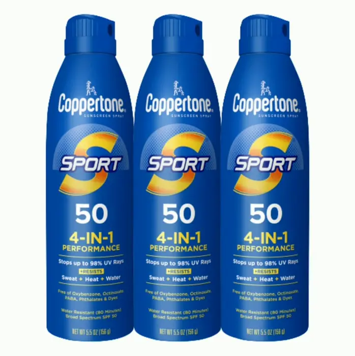 Comes with three 5.5 oz containers of Coppertoneu00A0SPORT SPFu00A050 Sunblock Spray