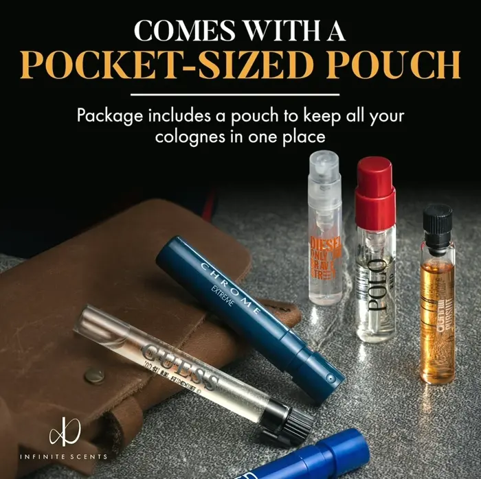 Men’s fragrance don’t come full to the edge. Be rest assured, the perfume in each vial is exact to the specified amount on its packaging.nCurated cologne sampler: Make a lasting impression with our diverse selection of 10 confidence-boosting perfumes. Sample small vials span from 0.02 oz. to 0.05 oz. and ship with a premium carrying case.nGenuine luxury scents: Explore with different 10 distinct fragrances–best-selling perfumes from top designer brands–to guide you find your favorite. Note: Specific fragrances vary according on availability.nSleek organizer: For your ease, the perfume trial set features a sleek and trendy bag so you can easily store the portable vials at your place or take them on the go for a short mist of confidence each time you require.nSelected by fragrance specialists: Unlike market rivals who select their fragrances seemingly at random, ours have been hand-picked by our experts with long time of industry experience to ensure the highest achievable quality compilation of scents for you to experience.nGreat gift for him: The perfect gift or small gift for your husband, man, brother, kid or male companion, our perfume samples are a perfect offering for the guy in your life on anniversaries, milestones, and special occasions.