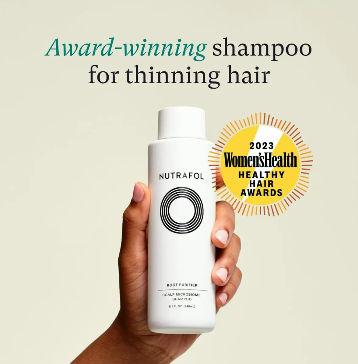 DAILY CLEANSING SHAMPOO: One 8.1-fluid-ounce bottle of Nutrafol Root Purifier Shampoo designed by physicians for hydrating the scalp and hair while improving volume and strength. COLOR-SAFE FOR WOMEN WITH THINNING HAIR: Sulfate-free, dry scalp shampoo deeply cleanses and eliminates excess oils without drying out the scalp. RESULTS IN 2 WEEKS: In a clinical trial, 100% of participants showed immediate improvement in dryness and flakiness and 100% saw a reduction in sebum after 2 weeks. EFFECTIVE AND HYDRATING: Nutrafol shampoo contains antioxidants from Australian Wild Berries, Vegan Proteins, and prebiotics for supporting hair health. CERTIFIED MICROBIOME-FRIENDLY: Nutrafol Scalp Care is one of the limited product lines to be approved as microbiome-friendly by MyMicrobiome. The certification process ensures that products do not upset the balance of the scalp’s microbiome and preserve the diversity of the scalp ecosystem.