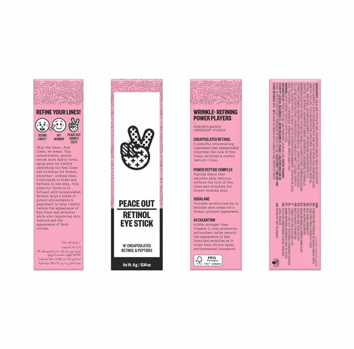 Combat dark circles and weary eyes with this effective balm. This versatile balm boosts skin elasticity and hydration, ideal for delicate skin. Enjoy immediate and lasting results with this advanced blend which moisturizes and shields against external stressors, minimizing fine lines, dark circles, and swelling. Easy application, just glide in small moves after cleaning. Key ingredients: Encapsulated retinol, peptide blend, plant-based squalane, and antioxidant astaxanthin. Clean, vegan, and animal-friendly. Peace Out Skincare is dedicated to acne-prone skin, providing effective, clean, and enjoyable beauty solutions.