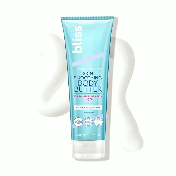 Experience soft and smooth skin with Bliss Body Cream, perfect for diminishing uneven skin on arms and lower limbs. This fragrance-free formula softly hydrates and exfoliates every day. Infused with a potent 10% AHA blend, plus nourishing oils and butter, it assists balance your skin to a smooth state. Notice visible results in within 10 days: skin feels moisturized, less bumpy, and radiant. Use every day on clean and dry skin. Remember to apply SPF since the product contains alpha hydroxy acids, heightening sun sensitivity.