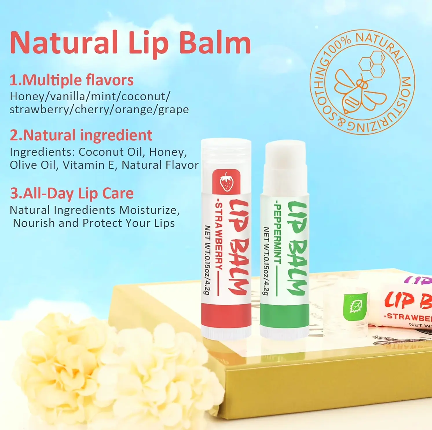 Discover Eight Unique Scents – Sweet Honey, Vanilla, Mint, Coconut, Juicy Strawberry, Cherry, Orange, Grape. Two of every flavor. Made with beeswax and nourishing components. Our lip balms are free from mineral oil, chemicals, gluten and phthalates. Non-GMO and suitable for adults and children of all age groups. Vit E aids in hydrating and hydrate the lips by maintaining your natural skin barrier. It can also assist to create a barrier to shield lips in windy and cold weather. These chapsticks include eight distinct flavors. Perfect for gifting, lip balms make cute party gifts, stocking stuffers, or a adolescent gift. Unhappy with anything, contact our support team, we will give you a satisfactory answer within 24 hrs