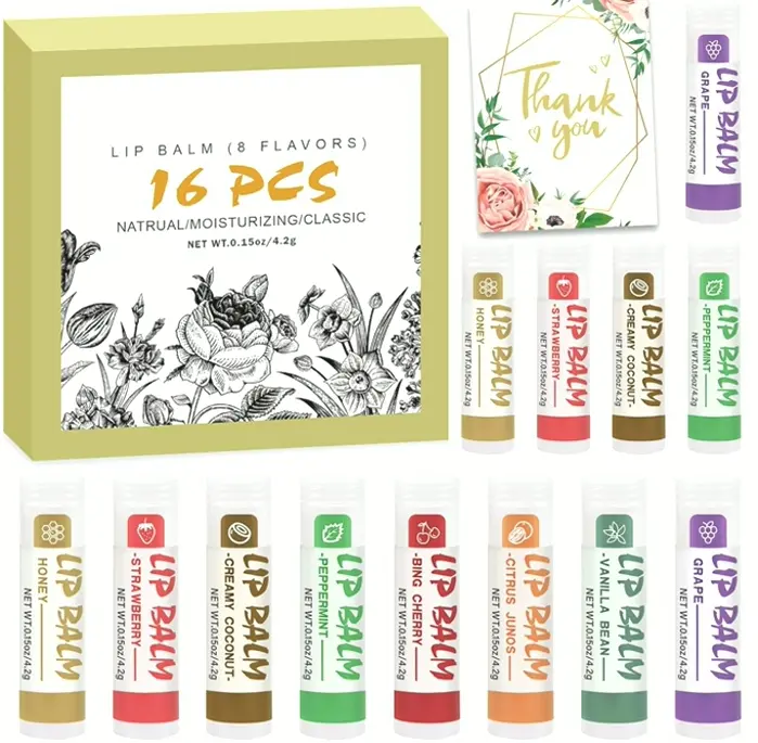 Set of 16 Organic Lip Balm with Vitamin E & Coconut Extract