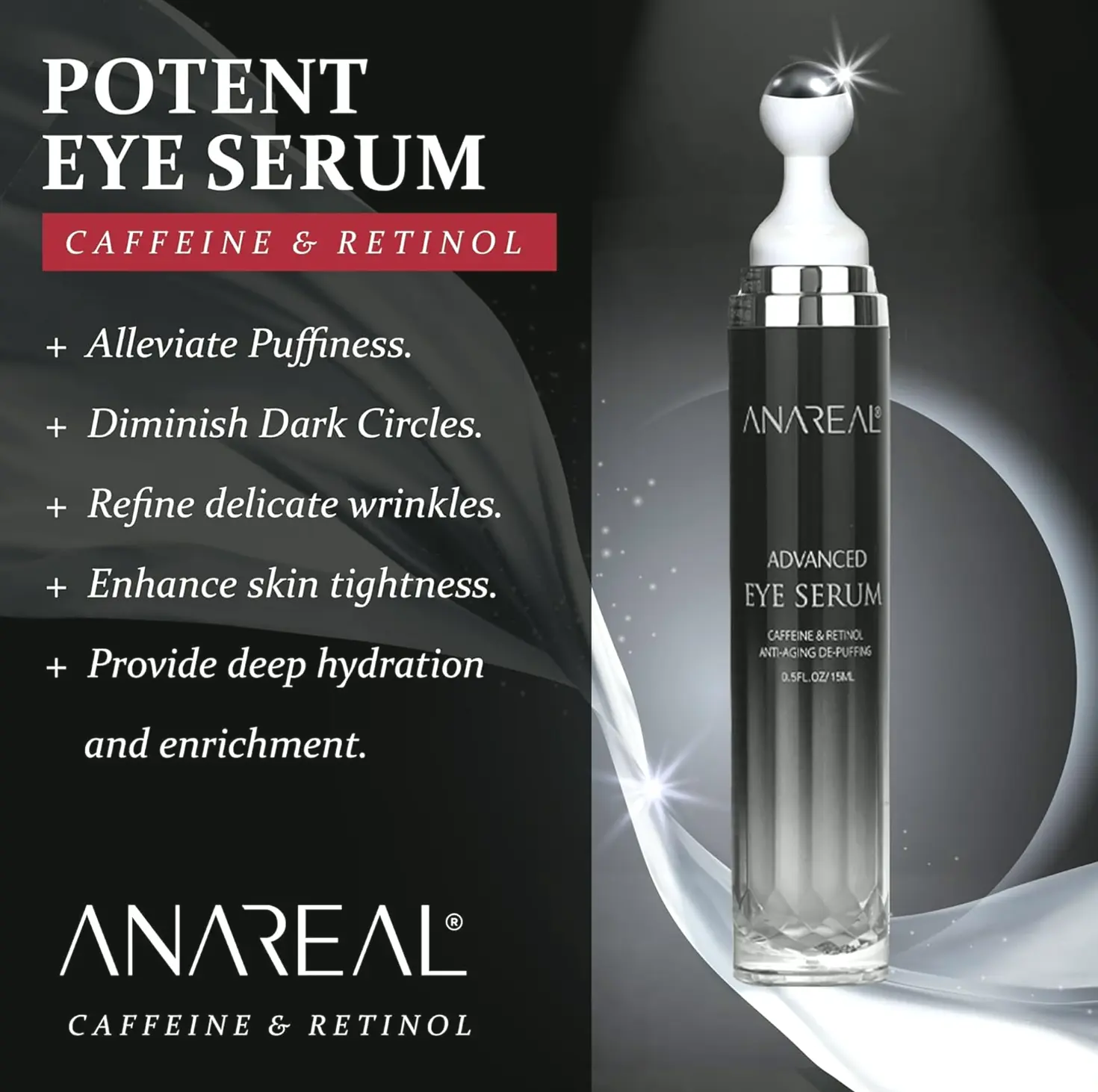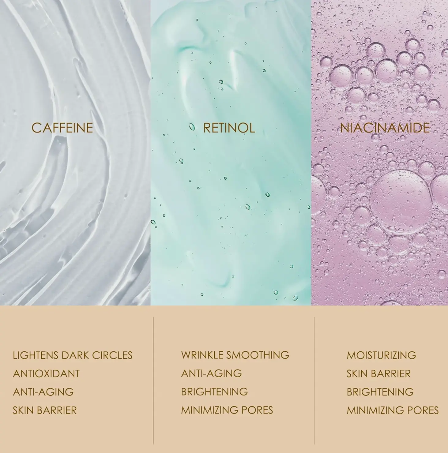 REDUCE DARK CIRCLES: This Eye Serum for Dark Circles has been infused with 5% caffeine extract and is adept at minimizing the visibility of dark circles. To achieve optimal outcomes, we recommend applying it in both in the morning and evening daily for at least 30 days.